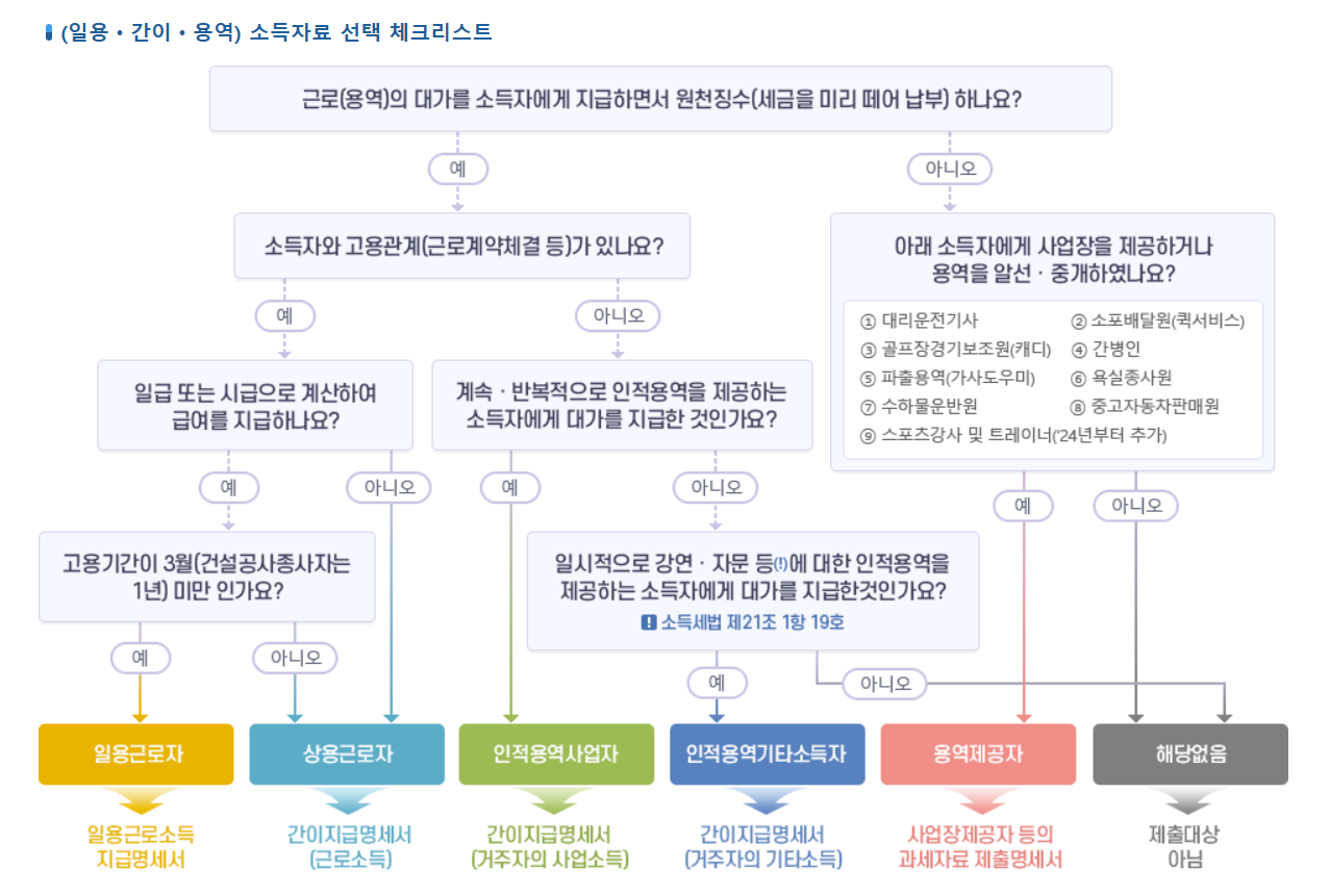 일용, 간이, 용역 소득자료 선택 체크리스트