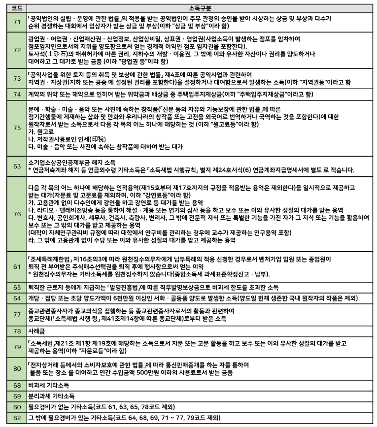 [참고용] 기타소득 소득구분표
