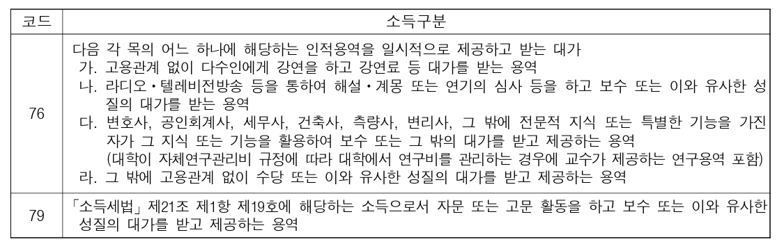 근로(인적용역자) 소득구분 방법