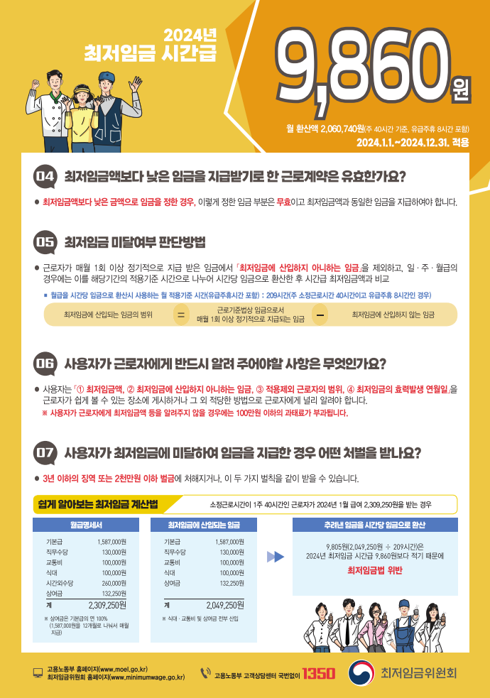 24년 최저임금(최저시급)계산과 최저임금 위반 시 벌금은?