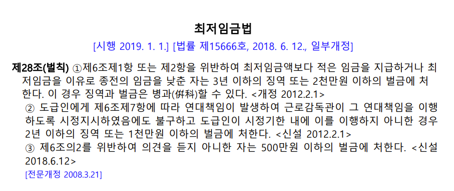 Q4. 사용자가 최저임금에 미달하여 임금을 지급한 경우 어떤 처벌이 있을까?