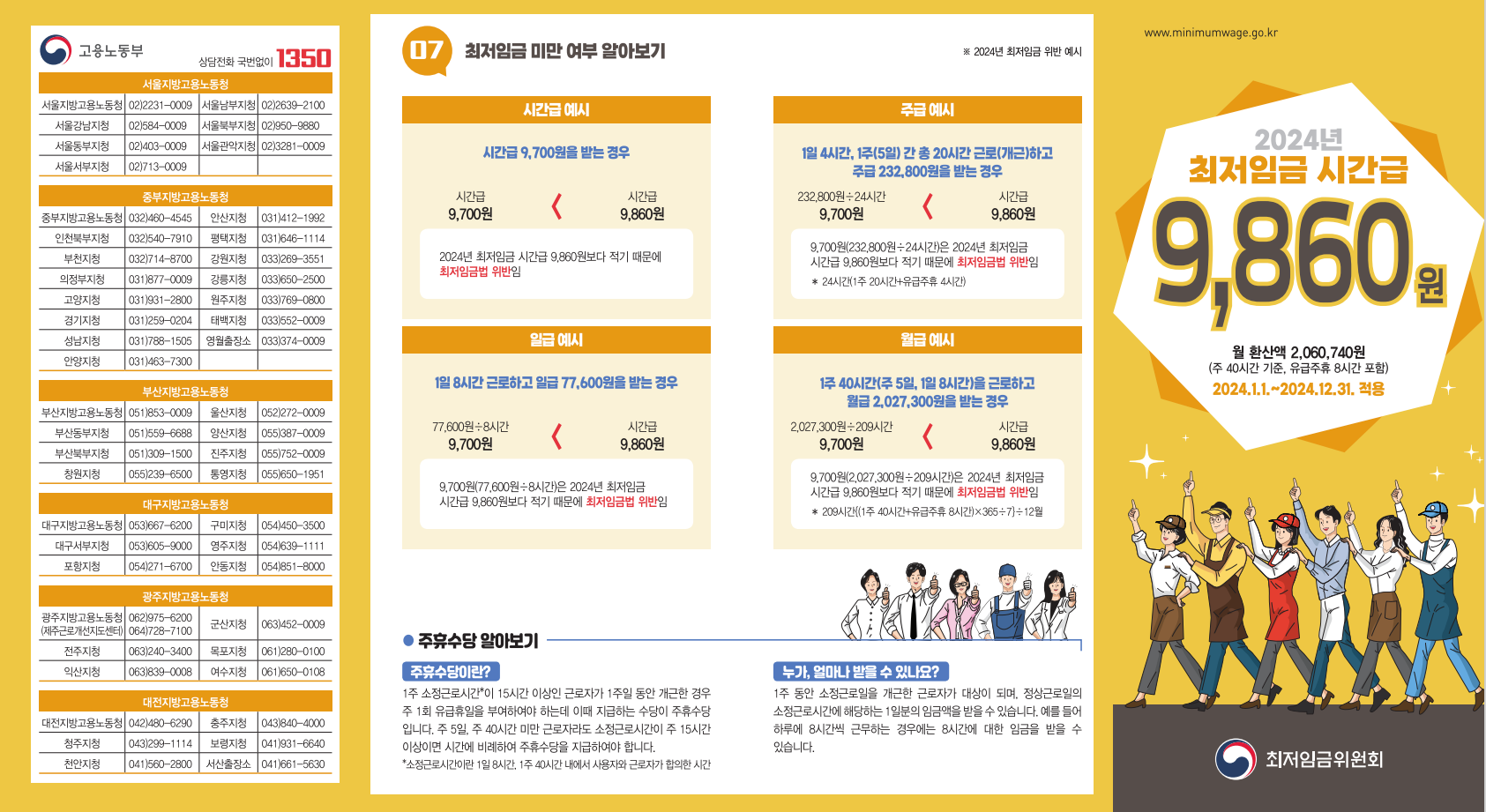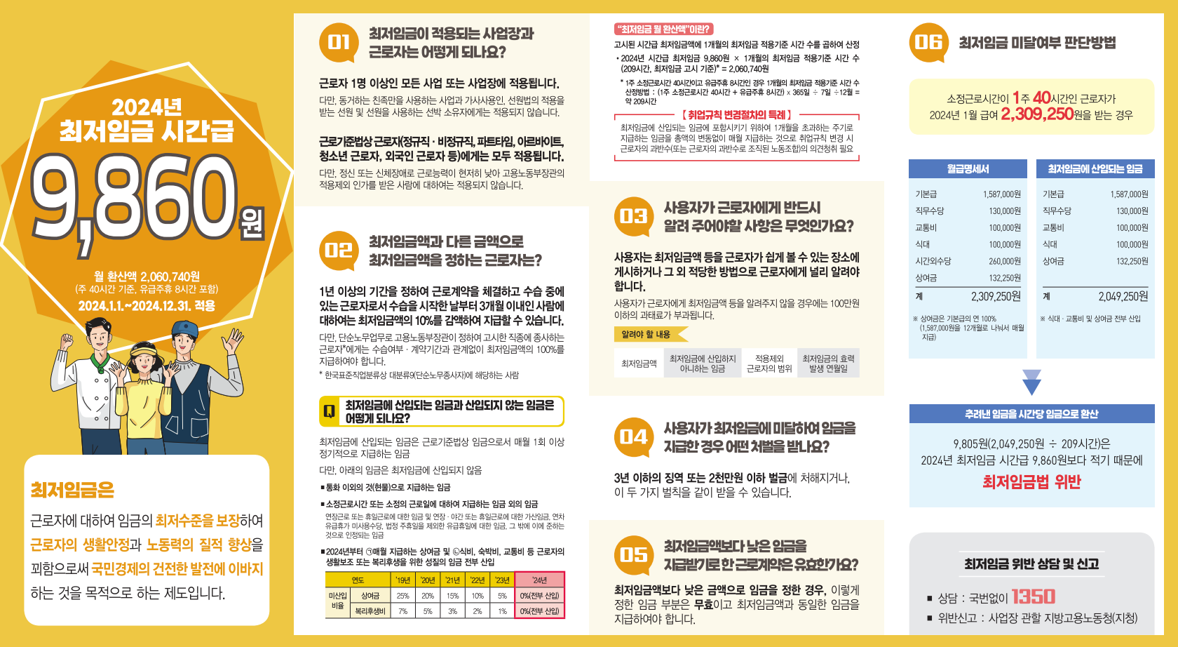 ▶ 2024년 최저시급은 2023년 대비 2.5% 인상된 9,860원이다. 물가는 진짜 쑥쑥 오르는데 월급은 왜 제자리걸음인 것만 같지.......