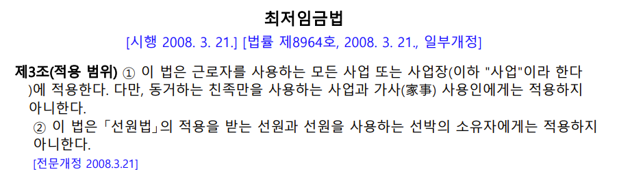 다만, 동거하는 친족만을 사용하는 사업과 가사사용인, 선원법의 적용을 받는 선원 및 선원을 사용하는 선박 소유자에게는 적용되지 않는다